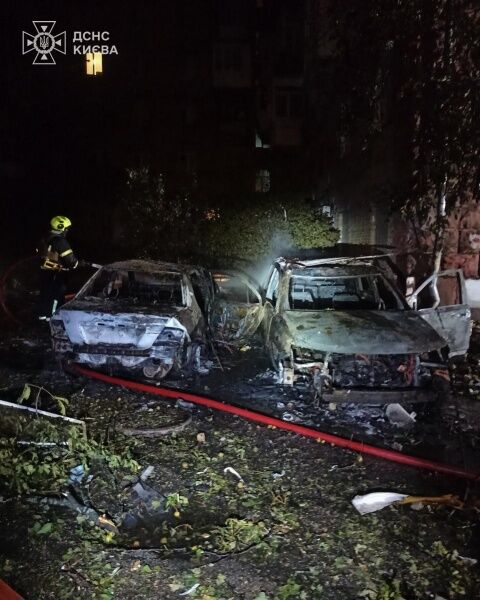В Голосеевском районе удар пришелся по жилому дому и автомобилям — вспыхнул пожар. В Шевченковском — ударной волной выбило окна в детском отделении одного из медицинских учреждений.