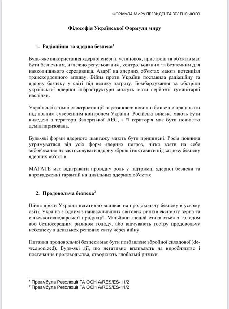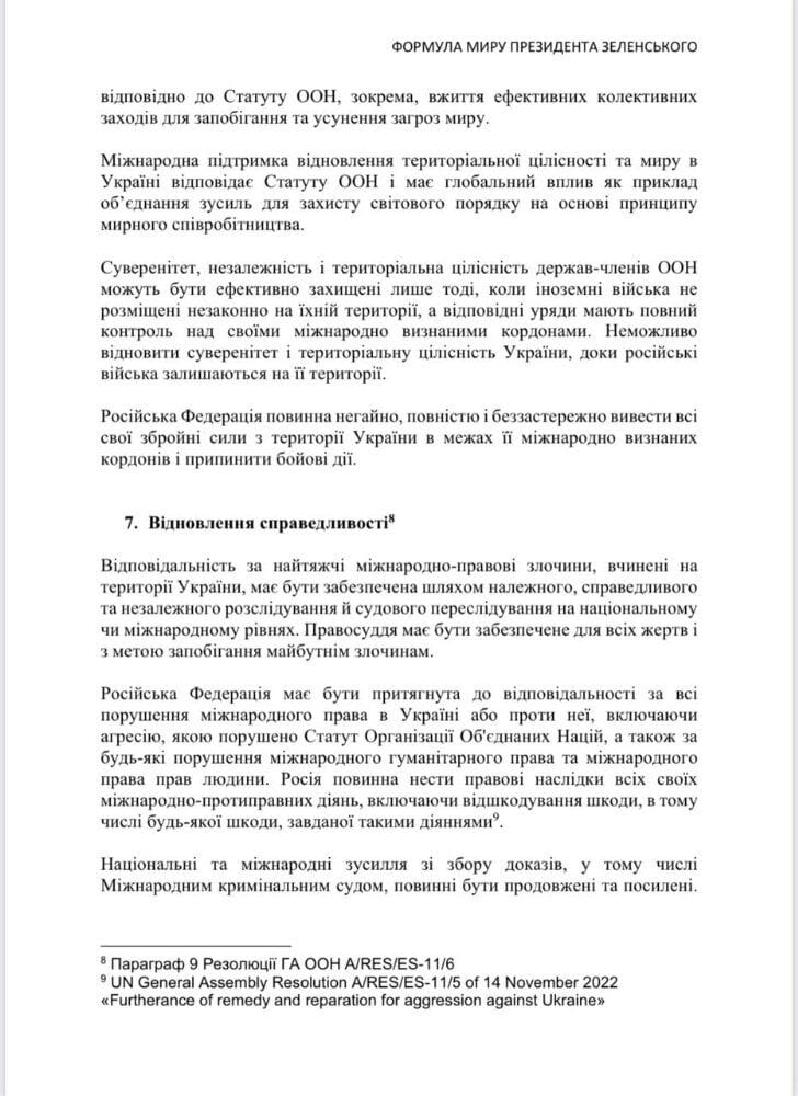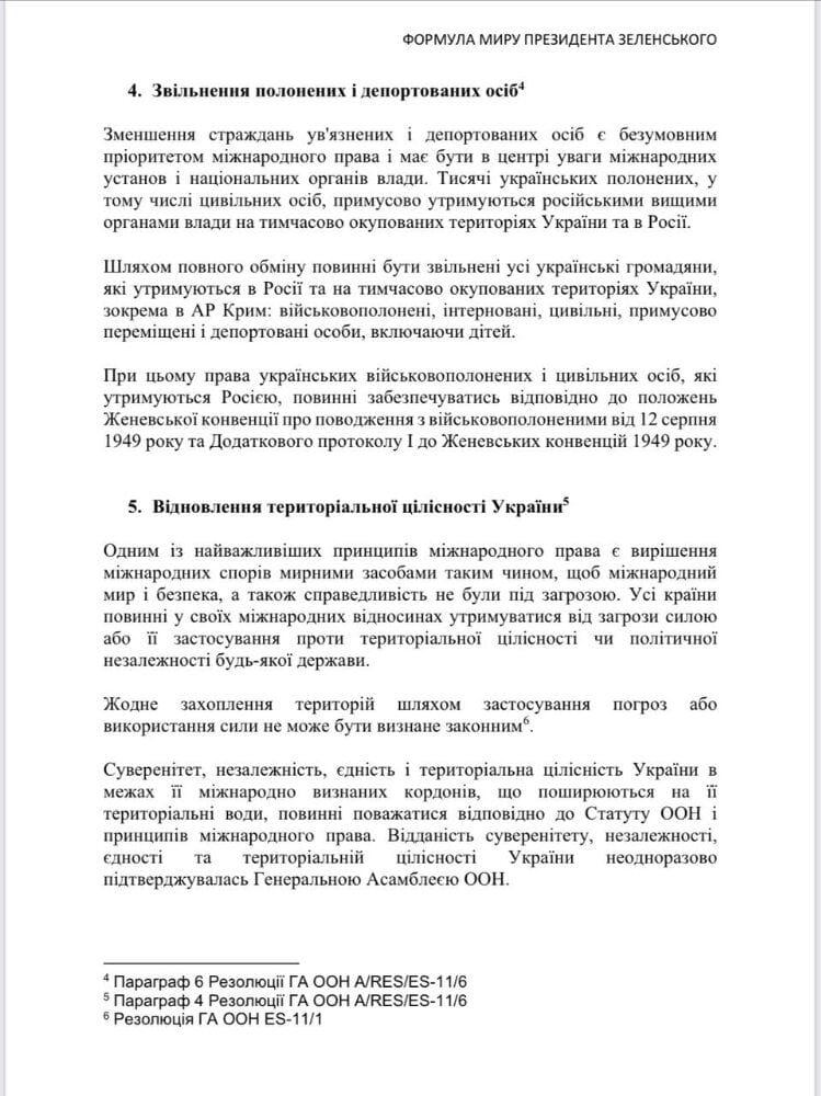 По словам руководителя ОП Андрея Ермака, Формула мира построена на ключевых принципах международного права и Устава ООН, а также уважении суверенитета и территориальной целостности стран в пределах их международно признанных границ.