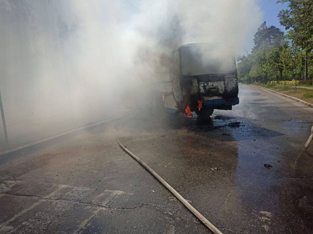 Зазначається, що рятувальники ДСНС оперативно прибули на місце пожежі, але автобус повністю вигорів.