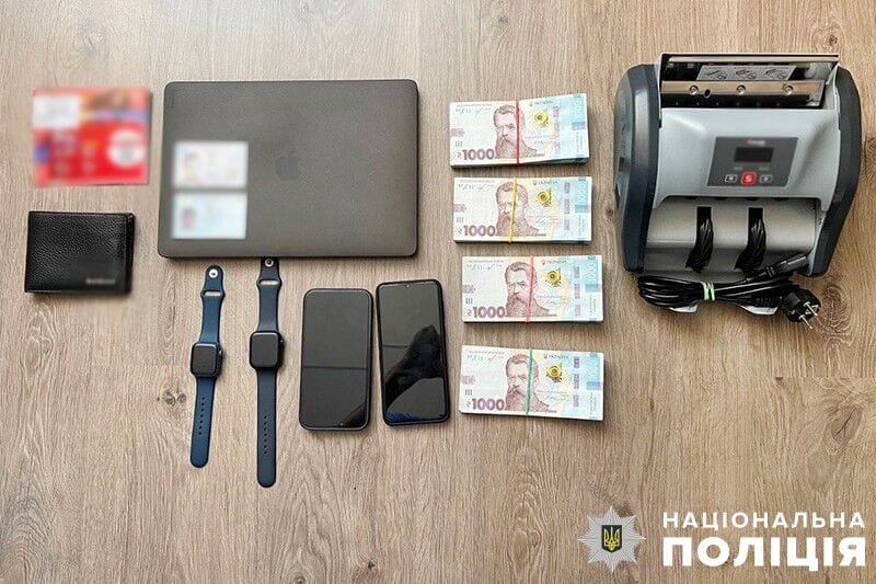 У всіх чотирьох підозрюваних провели обшуки під час яких було вилучено: понад 40 тисяч доларів США та 350 тисяч гривень готівкою, два автомобілі, мобільні телефони та ноутбуки, банківські картки, прикраси з діамантами та чорнові записи.